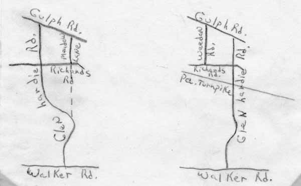 After his death in 1945 it was decided to fix-up and sell all of the tenant houses. Renting them had become very unprofitable and less man power was needed with the introduction of milking machines and other types of mechanized farming. Under the direction of Mr. Scott's wife, Helen Hardie Scott, and his children, Hardie and Jean Scott Darby, the farm itself though remained essentially unchanged. (See 1946 map at the end of this document) Much of the fertile valley land as far south as Pugh Road was either owned or rented by the Scotts for farming. But in the winter of 1952 the Pennsylvania Turnpike Commission, by the right of eminent domain, acquired a turnpike right-of-way through the middle of the farm. This almost completely stopped farm operations, necessitated the sale of the huge dairy herd, and hastened the sale of the tenant houses.
